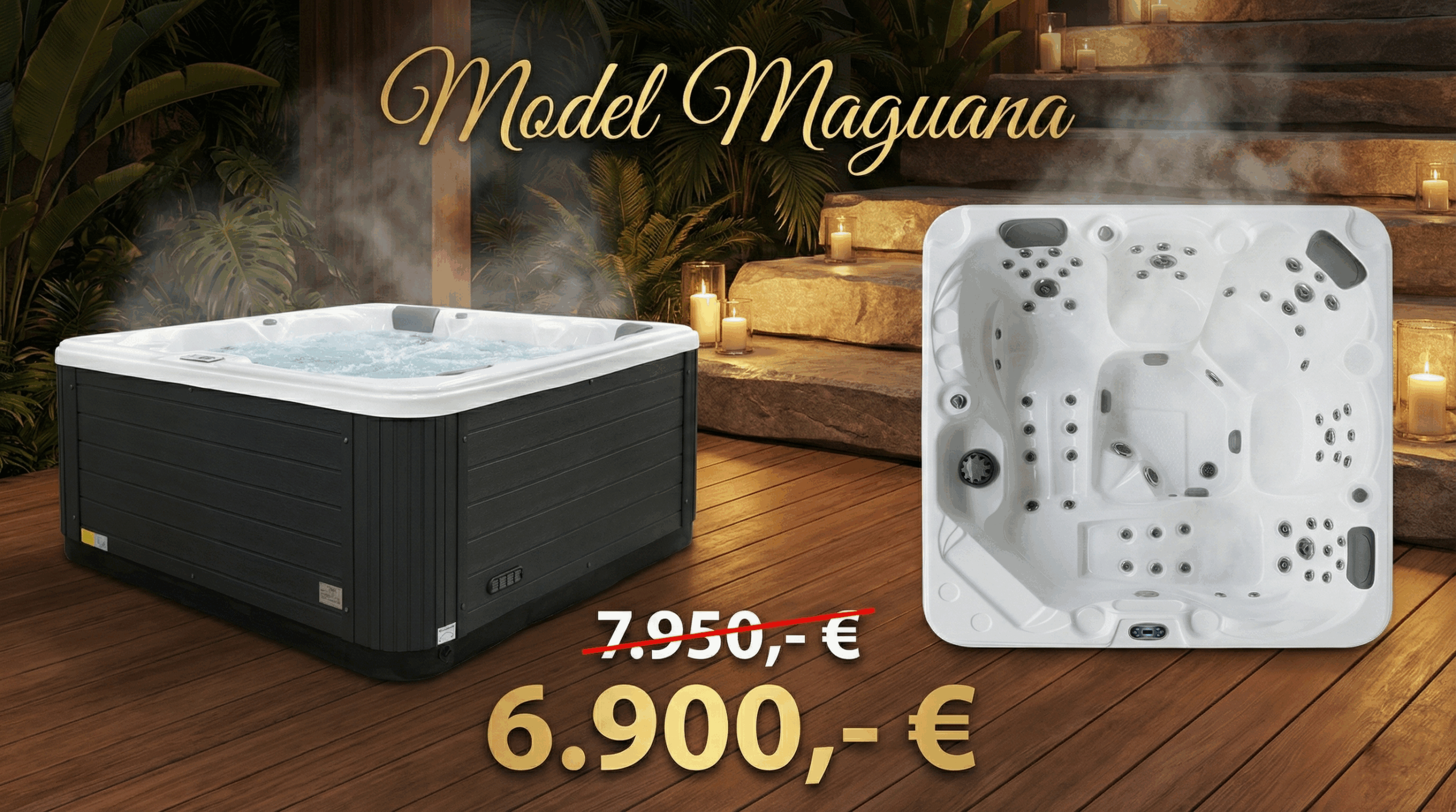 el Jacuzzi «MAGUANA» a un precio increible – hasta fin de existencia en nuestras Tienda en Palmera y Denia